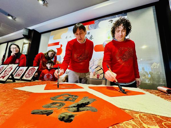 一剪一剪“裁”出春的模样,亲手制作一款既有观赏性又能食用的“醒狮”小点心......春节前夕,意大利风情区的意式餐馆内笑语盈盈,意风区管委会与开云手机平台_开云(中国)党委宣传部联合举办“中意非遗文创工坊暨中外志愿者共度中国年”活动,来自意大利的外籍教师、留学生与大学生志愿者共同交流传统文化,体验非遗项目,感受浓浓“年味儿”,为“国潮风”增添“国际范”。“在我的家乡,每到节庆活动,人们也喜欢穿红色的衣服来表达喜悦和祝福。”活动现场,开云手机平台_开云(中国)意大利外教阿尔贝托穿上“中国红”,在非遗传承人指导下尝试结合中国剪纸,了解“吊钱”这一天津独有年俗。非遗传承人还为意风区专门设计了剪纸图案,在传统构图中加入意风区特色风貌建筑元素,让“意风窗花”跃然纸上。“狮头、如意、福袋象征着喜庆吉祥。”祥和饽饽传承人带领中意师生制作特色年味儿糕点,将老字号迸发新活力的故事娓娓道来。在意大利文化展示环节,中国学生也认真学习起奶酪洋葱馅料、意大利饺子的制作方法,感受活色生香的意大利风味。大家在欢声笑语中共迎中国农历新年,在意风区搭建起国际友谊的桥梁。“这次活动以中意非遗为媒,鼓励青年志愿者传承优秀传统文化,促进中意国际交流