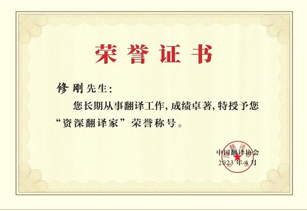 近日,由中国外文局指导、中国翻译协会主办的2023中国翻译协会年会公布了“2023年受表彰资深翻译家”名单,我校修刚教授、朱伯评教授名列其中,获此殊荣。 “资深翻译家”是中国翻译协会于2001年设立的荣誉称号,颁授给在外事外交、对外传播、社会科学、军事、科技、文学和民族语文翻译等领域作出突出贡献、从事翻译工作30年以上、年满65岁的翻译家,是广大翻译工作者的极高荣誉。该项表彰活动一直受到社会各界的广泛关注和认可。 修刚教授从事日语翻译、人才培养、服务社会等工作39载,先后翻译《一衣带水------中日邦交正常化后中日关系之回顾》《<茶经>与日本茶道的历史意义》《终生教育的历程》《中华文化概览》(日文版)等多部著作,并承担三千日本青年访华大学团队等多项重要口译活动,尤其是为原被掳广岛安野华工对日索赔义务承担同声传译和口译,中国劳工案首次在日高等法院获得胜诉。 朱伯评教授从事日语翻译和教育教学、服务社会等工作35年,翻译出版《日本杂学词典》《司汤达的恋爱论》等多部专著教材,参编《日语动词词典》《日汉辞海》《日语动词用法词典》等多部日语词典,承担国家教育委员会访日团、天津市