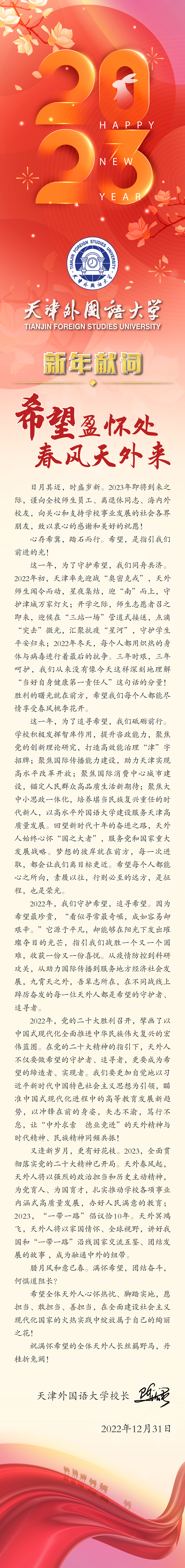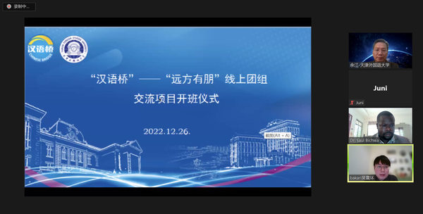 远方有朋,相聚津门。12月26日下午,由教育部中外语言交流合作中心主办,我校亚非语学院承办的“远方有朋”汉语桥线上团组交流项目举行开营仪式。副校长余江、达累斯萨拉姆大学教育学院斯瓦希里语系主任索尔·比齐瓦出席,我校国际合作与交流处、亚非语学院相关负责人及教师代表,以及达累斯萨拉姆大学学员150余人参加仪式。余江代表学校对本次线上团组交流项目顺利开营表示祝贺,并简要介绍了学校的基本情况、对外汉语教学以及交流工作。他指出,中非两方交往历史源远流长,友谊深厚,随着“一带一路”倡议的不断推进,彼此间的文化交流也进入了崭新的篇章。虽然中非两地相隔万里,但是依然阻挡不了现在的年轻人想要学习汉语、了解中国的热情。他寄语全体学员,珍惜学习机会,提高汉语综合运用能力,增进对中国文化的了解,为加强中非文化交流,语言合作和文明互鉴贡献力量。索尔·比齐瓦向我校为达累斯萨拉姆大学学员提供宝贵的学习机会表示感谢。他指出,中国和坦桑尼亚自建交以来,一直风雨同舟,互帮互助,结下深厚友谊。他认为学习汉语对于非洲青年了解中国、爱上中国至关重要,衷心希望双方在未来可以在汉语教育方面开展更多合作,为中坦双方新时代的友谊合作添
