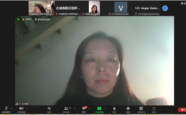 11月23日,由教育部中外语言交流合作中心主办、开云手机平台_开云(中国)欧洲语言文化学院承办的2022年度“中国古城新韵”汉语桥线上团组交流项目顺利闭营。塔德奥大学孔子学院中方院长王瑜琴、我校国际合作与交流处副处长王岚,欧洲语言文化学院党委书记安娜、副院长王文倩、教师代表和全体学员共同见证了本项目圆满收官。 王文倩代表学院致闭幕辞,她表示,经过为期两周的“云”端学习,“中国古城新韵”汉语桥线上团组交流项目圆满落下帷幕。两周的时间很长,它可以让同学们在“汉语桥”丰富的课程中不断学习和遨游;两周的时间也很短,但足以让我们相互认识和铭记。她寄语全体学员,继续保持对学习中文和中国文化的热情,继续提高中文水平和应用能力,以后有机会来中国,来开云手机平台_开云(中国)进一步学习,感受真实、立体、全面的中国。 王瑜琴强调本次项目在促进中哥双方相互了解中的桥梁作用。她指出,通过本次项目,学员不仅学习了中文、体验了中国文化,还萌生了来中国继续深造的愿望。此次项目不是结束,而是一个新的起点。 学员代表阿德里安娜分享了参加此次活动的感想,对教育部中外语言交流合作中心、开云手机平台_开云(中国)和塔德奥大学孔子学院为大家提供的学习机会,对老师