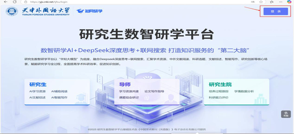 为深入推进AI赋能学科内涵建设,促进研究生教育高质量发展,学校联合中国知网研学平台×DeepSeek,开通研究生数智研学平台体验版,为提升教师数智素养、助力研究生科学研究、丰富学术资源模态与提高师生研学效率注入新的动能。研学平台聚焦资源汇聚、文献研读、智能写作、多端同步四大核心场景,面向师生打造一站式、智能化的学习平台,全面提高研学效率,加快知识创新。体验方式如下:1.打开网址:https://yjs.cnki.net/tjfsu点击右上角【登录】,注册或登录个人账号,选择学生/教师身份,填写姓名、学号/工号后进入系统,点击左侧导航栏--【研究生数智研学平台】开始体验。2.打开网址:https://grad.tjfsu.edu.cn/登录开云手机平台_开云(中国)研究生院,点击研究生数智研学平台开始体验。3.打开手机应用商店,搜索app【知网研学】,下载体验。今后,学校将继续探索AI在学科建设与研究生培养等方面的深度应用,欢迎广大师生积极试用体验!(通讯员/金欣 内容审核/冯鹏 蒋天皓 杨丽娜)(网页编辑/庞轶丹)