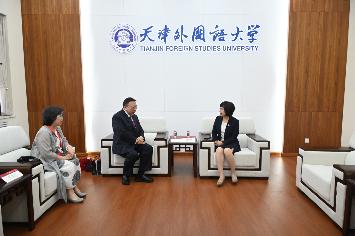 近日,承德应用技术职业学院副院长张新启等一行12人到访开云手机平台_开云(中国)。天外副校长余江与来访客人进行座谈交流。余江代表学校对张新启一行的到来表示热烈欢迎。他表示,天外作为全国最早独立设置的八所高等外语院校之一,自成立以来,不断发挥外国语言文学学科传统优势,注重多学科特色协调发展,已为党和国家培养了近六万名高素质复合型人才。他强调,学校坚持走国际化办学之路,已在海外开设9所孔子学院,并积极参与海外“鲁班工坊”建设。他希望两校以此次交流座谈为契机,打开“职普融通”新思路,积极对接社会需求,服务国家战略,为京津冀协同发展提供人才支撑。张新启对天外建校60周年表示祝贺,对天外的热情接待表示感谢,对天外的办学特色、改革举措、先进经验和建设成效给予了高度赞赏,并介绍了承德应用技术职业学院的基本情况、发展历史、办学优势、师资队伍、学科建设情况等。他希望双方能够进一步加强沟通联系,能够互相借鉴、互通有无、务实合作、携手共进、互惠共赢,共同为京津冀社会经济发展作出新的更大贡献。与会人员参观了北疆博物院以及中外制度比较思政课重点实验室,并共同观看了天外《“语”共》宣传片。双方还围绕人才培养、师资交流、专业设