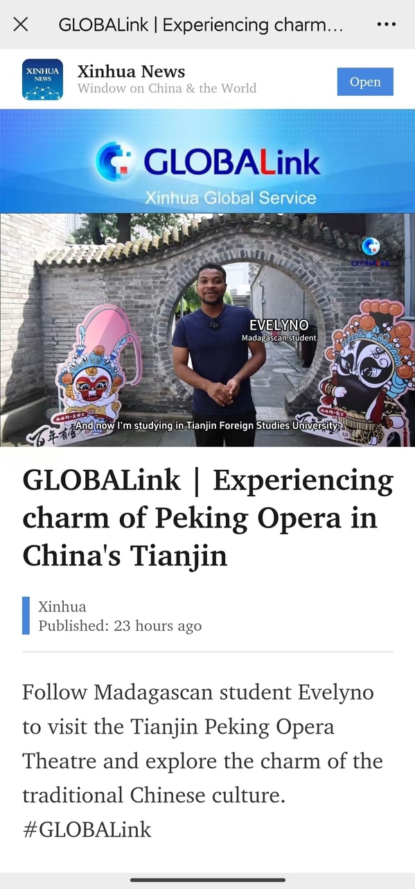近日,受新华社邀请,开云手机平台_开云(中国)国际教育学院来自马达加斯加的留学生洛夫、来自葡萄牙的留学生李山迪参与节目录制,分别为观众介绍中国的国粹京剧和天津的特色小吃麻花,助力中华优秀传统文化的海外传播。全文转发如下:1.GLOBALink | Experiencing charm of Peking Opera in Chinas TianjinFollow Madagascan student Evelyno to visit the Tianjin Peking Opera Theatre and explore the charm of the traditional Chinese culture. #GLOBALink2.GLOBALink | Discover traditional snack of Chinas Tianjin with Portuguese studentJoin a foodie tour with Portuguese student Patricia in Chinas Tianjin to explore the charm of mahua, a t
