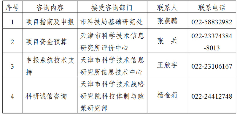 各单位、各部门:为做好2025年天津市自然科学基金项目申报工作,根据天津市科技局发布的《市科技局关于征集2025年天津市自然科学基金项目的通知》和我校关于做好此项工作的精神,现将有关要求通知如下:一、受理范围与要求天津市自然科学基金项目重点资助自然科学领域的基础研究与应用基础研究,引导我市科技人员围绕我市经济社会发展需求,开展基础性、前瞻性的科学问题和前沿技术研究,加强高层次创新人才培养,提高我市原始创新能力,为我市经济高质量发展提供科技支撑。天津市自然科学基金项目经费采取“包干制”进行管理,受理的项目分为三类:青年项目(A类、B类)、面上项目和重点项目。(一)青年项目A类:即原天津市杰出青年科学基金项目,重点资助未满40岁且在基础研究方面已取得突出成绩的本市青年学者,自主选择研究方向,围绕国家战略需求以及天津市经济社会发展需要开展创新研究,培养造就一批拔尖人才。研究年限一般不超过4年,每项资助100万元。B类:重点资助未满35岁的青年科学技术人员在基金资助范围内自主选题,开展基础研究工作,培养青年科学技术人员独立主持科研项目、进行创新研究的能力。研究年限一般不超过2年,每项资助6万元