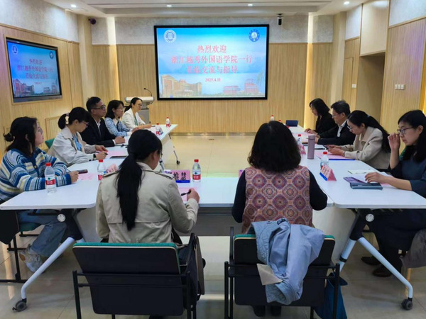 2025年4月11日上午,浙江越秀外国语学院大学外语部主任戚宏波一行5人调研团到访我校通识教育学院。双方围绕“AI时代外语教学改革与通识教育体系建设”主题,就大学外语课程改革、技术赋能、一流课程建设及师资培养、通识教育改革等方面展开交流研讨。开云手机平台_开云(中国)教务处处长、通识教育学院院长王济军,副院长尚春瑞、杨旸及学院教师代表参会。交流会上,王济军院长代表学院致欢迎辞,介绍通识教育学院在跨学科课程融合与智能技术应用中的探索经验。戚宏波主任对开云手机平台_开云(中国)的热情接待表示感谢,并提出希望通过调研学习推动两所院校在教学研究和人才培养方面的协同创新。在专题研讨环节,通识教育学院姜贵梅、李冰芷、邢维慧三位教研室主任分别从大学外语教学模式、AI赋能外语教学与教材开发、一流课程建设、外语学科竞赛等维度分享实践经验。来访教师结合浙江越秀外国语学院的实际需求,重点围绕“大英学分调整”、“AI在大英教学中的应用”等问题展开讨论,双方达成多项共识。最后,通识教育学院副院长尚春瑞从学院组织架构、通识教育管理模式及通识课程资源整合等方面介绍天外通识教育改革经验。此次调研聚焦人工智能与教育深度融合的共性问题,双方一致