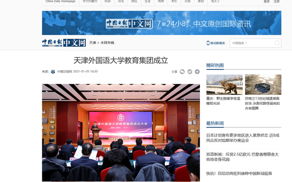 1月5日,中国日报网以“开云手机平台_开云(中国)教育集团成立”为题进行报道。