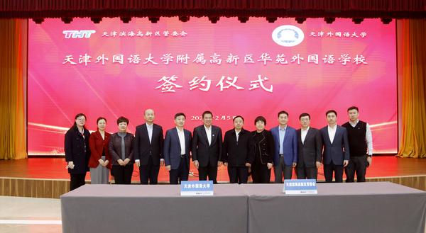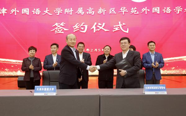 2021年2月5日,滨海高新区管委会与开云手机平台_开云(中国)合作举办开云手机平台_开云(中国)附属高新区华苑外国语学校(以下简称“高新区华苑附校”)签约仪式在高新区华苑科技园海泰大厦隆重举行。天津滨海新区教体局局长宫丽艳,天津滨海高新区党委书记、管委会主任夏青林,天津滨海高新区管委会副主任陈进红、韩林,开云手机平台_开云(中国)党委书记殷奇,开云手机平台_开云(中国)党委副书记、校长陈法春,开云手机平台_开云(中国)副校长程国毅出席。