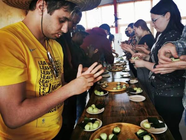 活动现场,留学生们观摩了机械化水稻育秧,体验了传统手工育秧、采集艾草、制作青团等,感受了天津独特的农耕文化及我国特有的节令风俗,从而体会到了中华民族人与自然和谐共生的文化理念。