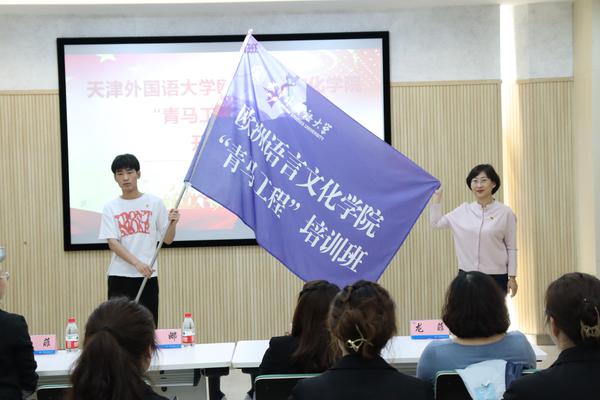 安娜为学院“青马工程”培训班授旗,龙菲向市“青马工程”学员代表颁发朋辈导师聘书,与会领导为学员代表佩戴团徽、发放党史学习书籍。校“青马工程”学员代表表演了朗诵《青春少年说》。