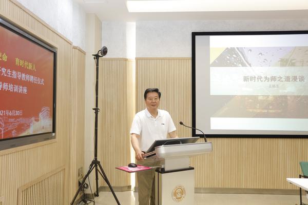 我校翻译与跨文化传播研究院院长、外国语言文学学科带头人、博士生导师王铭玉教授为全体新聘任导师作培训讲座。他以“新时代为师之道漫谈”为主题,从“新时代的为师要求”“为师之道的传承与创新”“为师的四个要素”“新时代为师的衡量尺度”四个方面,以24位古今名家、优秀教师、研究生导师的事迹为例,阐述了新时代导师的使命担当,重点围绕“师德、师学、师心、师情”四个维度,详细分析了研究生导师应该具备的个人要素。他勉励新遴选的研究生导师要重视言传身教,为学生树立人生榜样,为建设高水平外国语大学贡献力量。