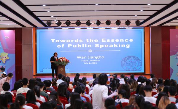 中国外语演讲与辩论教学研究专业委员会副会长、复旦大学英语演讲与辩论中心主任万江波教授讲座