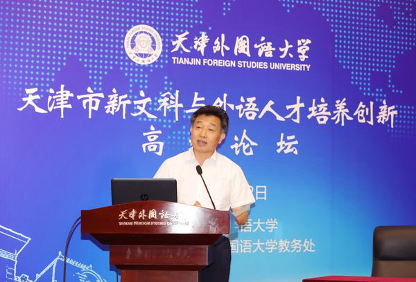 白海力在讲话中指出,“天津市新文科与外语人才培养创新高端论坛”是以实际行动在响应习近平总书记的号召、响应国家对新时代外语人才的迫切需要,体现了天外的责任与担当。他对我校在京津冀联防联控、全力打赢疫情防控阻击战中所做工作表示肯定,就教育部、天津市关于新文科建设的顶层规划和工作部署进行了深入浅出的讲解。他表示,本次论坛旨在加强天津市各高校外语人才培养校际间合作,探索新文科背景下外语人才培养的创新发展,共同推动天津市高校外语领域的新文科建设。