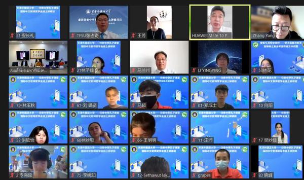 参加开幕式的还有泰国博仁大学秘书长蓬萨、泰国岱密孔子课堂负责人宋嘉彬、我校国际合作与交流处处长张占奇、国际传媒学院党委书记孙雪颖、院长马兰州、任课教师代表张洋、孔艳。开幕式由国际传媒学院副院长王芳主持。开幕式结束后,孔艳老师为学生进行第一次线上直播课教学,孔老师准备充分,课程设计生动有趣,与学生形成良好的互动。在未来一个月的项目学习中,泰国学员将在语言课程、文化课程和实境课程中学习汉语,在富有中国传统文化特色的故事中加深对中国文化的了解。