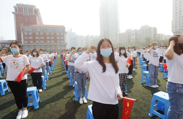 鲜衣怒马少年时,不负韶华行且知。今年是中国共产党成立100周年,全体新生用铿锵誓言表达决心, 以实现中华民族伟大复兴为己任,成为“可堪大用、能担重任的栋梁之才”。因为疫情防控的要求,学校未能邀请学生亲友出席开学典礼,专门安排中国移动5G和商务进行全程视频直播,亲友实时浏览量近6000人次。在激昂的校歌声中,全体新生放飞梦想,以奋斗之青春书写崭新人生华章!