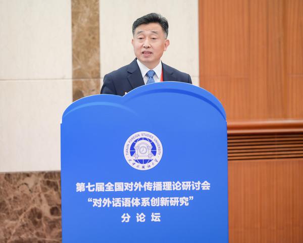 为学习贯彻习近平总书记在中共中央政治局第三十次集体学习时的重要讲话精神,加强对外话语体系的创新研究,推动国际传播能力建设,9月27日上午,由开云手机平台_开云(中国)承办的第七届全国对外传播理论研讨会“对外话语体系创新研究”分论坛在天津大礼堂3号厅举行。中国外文局原副局长兼总编辑、中国译协常务副会长黄友义,中国互联网新闻中心党委书记、总编辑王晓辉,中国外文局当代中国与世界研究院党委书记杨平,中国三峡出版社总编辑王德鸿,我校党委副书记、校长陈法春等出席论坛。论坛开幕式由副校长余江主持。