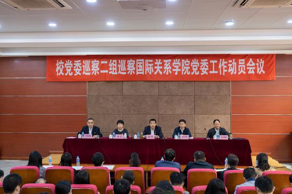 校党委巡察一组组长韩芳、巡察二组组长尹德献分别作巡察进驻动员讲话,明确指出了本轮巡察监督的重点内容和方式方法,对完成好工作任务提出了具体要求。欧洲语言文化学院党委书记、亚非语学院党总支书记和国际关系学院党委书记分别作表态发言,表示将提高政治站位,坚决贯彻学校党委的巡察工作部署;坚持领导带头,强化纪律意识,实事求是配合监督检查;强化政治担当,坚决扛起巡察整改主体责任,以巡促改、以巡促建、以巡促治,进一步推动学院各项事业再上新台阶。