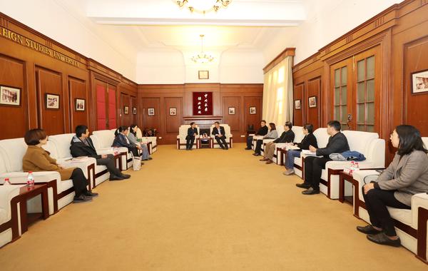 10月21日,中国日报社副总编辑王浩一行来校调研交流。校党委书记殷奇会见中国日报社一行。中国日报网总编辑韩蕾、中国日报社发行部二处处长吴蕾、天津记者站站长杨成、21世纪英文报天津工作站站长周中明,校党委宣传部、办公室、科研处、高级翻译学院、英语学院、国际传媒学院等负责同志参加了座谈会。