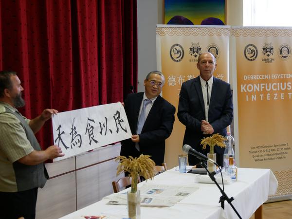德布勒森大学孔子学院中方院长向博物馆馆长赠送书法作品