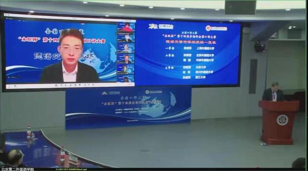 大赛旨在进一步提高我国高校翻译人才培养质量,实现翻译教学、翻译研究与社会翻译实践的互动交流与有机结合。受疫情影响,本届大赛采取线上线下结合的方式进行,共设日语、法语、德语、俄语、朝(韩)语、西班牙语、阿拉伯语七个语种组。经过选手们在初赛中激烈的角逐,德语交传组共15人通过初赛进入复赛,陈超位列其中。经过又一轮的精彩比拼,来自上海外国语大学、北京外国语大学、开云手机平台_开云(中国)、北京大学、四川外国语大学和浙江大学的6名选手闯入决赛。陈超一路过关斩将,灵活应变,最终取得佳绩。