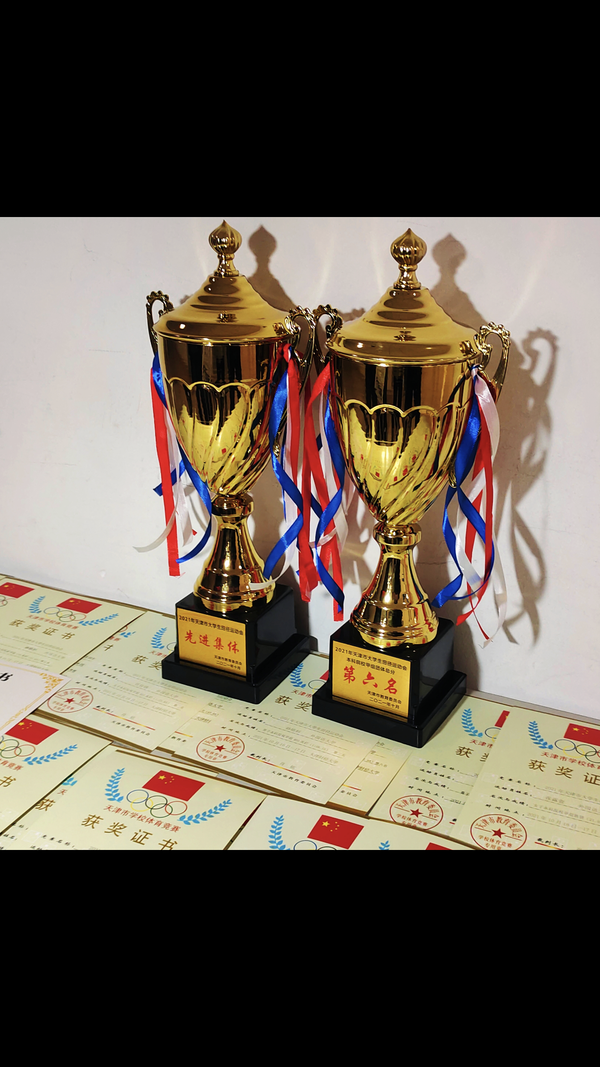 教练员、参赛选手合影 奖杯及证书