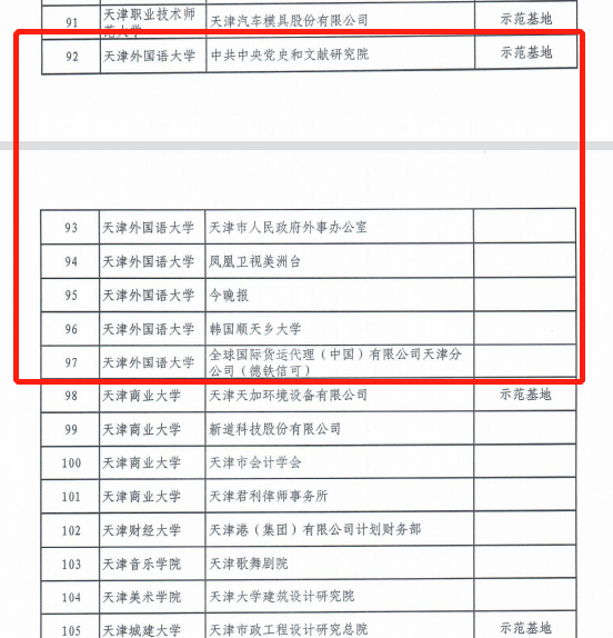 经市教委专家评审组审议,我校6个天津市首批专业学位研究生联合培养基地全部通过验收,其中我校与中共中央党史和文献研究院联合申报基地建设成效显著,获批“天津市高校专业学位示范联合培养基地”。