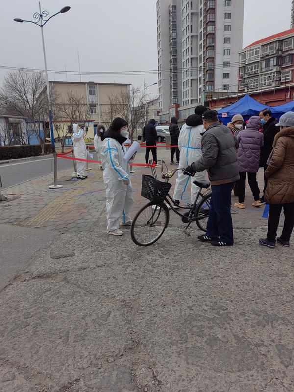 当疫情袭来,校青马学员、日语学院学生包丽颖主动在天津市滨海新区汉沽街道王园里社区核酸筛查现场做志愿者,协助居民出示健康码和登记码,帮助老人完成信息登记,引导检测队伍,维持现场秩序。