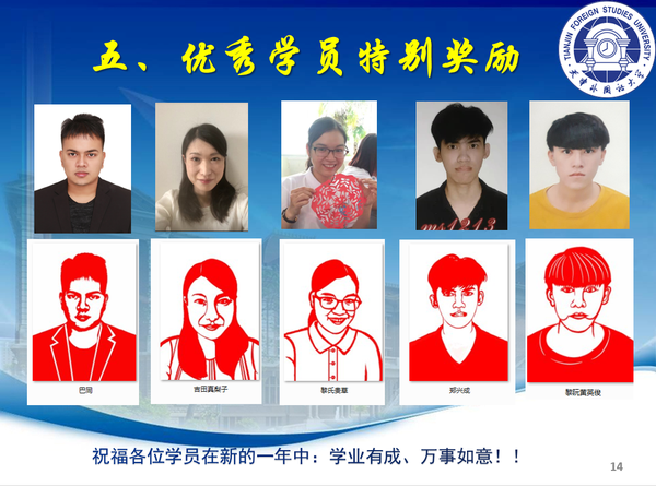 在为期四周、多维度的远程学习中,涌现出众多优秀学员,他们求知若渴、勤奋好学、挥洒汗水、收获知识。除颁发电子结业证书,学院还为出勤率高、积极参与交流分享、高水平完成习作的学员精心准备了一份特别奖励------肖像剪纸。