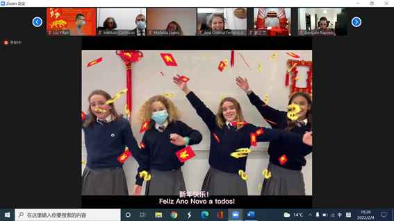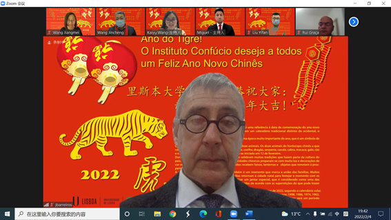 当地时间2月4日晚6点,里斯本大学孔子学院“迎虎年,送吉祥”春节庆祝活动隆重开幕。中国驻葡萄牙大使赵本堂出席,里斯本大学副校长西西莲?罗德里格斯、部分二级学院院长、孔子学院中外方院长和师生共一百余人参加了此次线上活动。