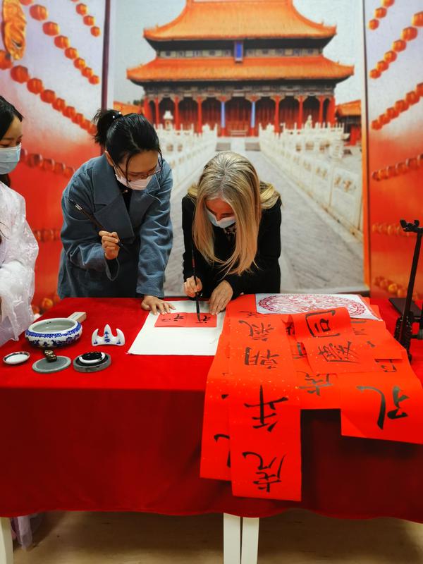 在孔院春节活动的主会场,西西莲?罗德里格斯还兴致勃勃地拿起毛笔书写对联、体验书法之趣,品尝了刚出锅的饺子,连声夸赞“好吃”。