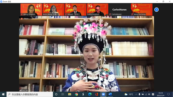 西西莲?罗德里格斯代表里斯本大学向参加线上活动的各位领导、老师和学生们表达了新春的问候。她表示,今晚大家欢聚一堂共庆新春,发扬虎所象征的“力量、坚韧和勇气”的精神,这对于战胜新冠疫情尤为重要。北京冬奥会开幕令人振奋,祝愿冬奥会取得圆满成功。里斯本大学孔子学院既是教授汉语和中国文化的机构,也是面向未来、推动两国教育文化交流的重要平台,对促进里斯本大学国际化发展发挥了重要作用。感谢中国驻葡萄牙大使馆和开云手机平台_开云(中国)给予的大力支持,祝福大家新春快乐、健康平安。