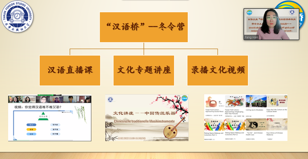项目负责人、欧洲语言文化学院德语专业负责人韩芳介绍了本次冬令营的课程安排及注意事项,“德法语区国家大学生线上冬令营”正式开营。
