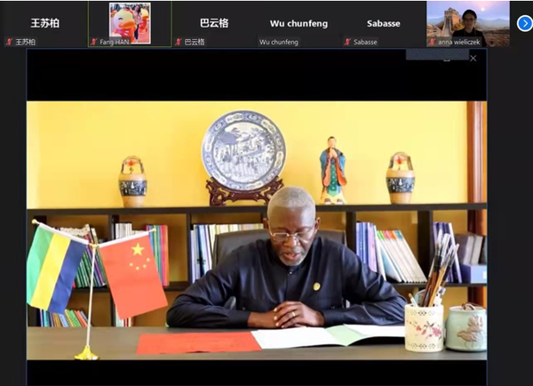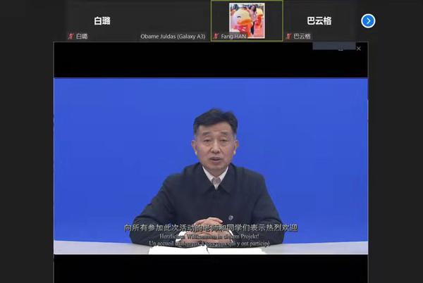 加蓬邦戈大学校长苏玛奥在致辞中简要介绍了邦戈大学孔子学院的情况。他代表邦戈大学对参加此次线上冬令营的所有师生致以诚挚问候,并在虎年新春佳节之际祝陈法春校长及开云手机平台_开云(中国)所有师生员工身体健康、万事如意,期待着与大家进行面对面的交流。