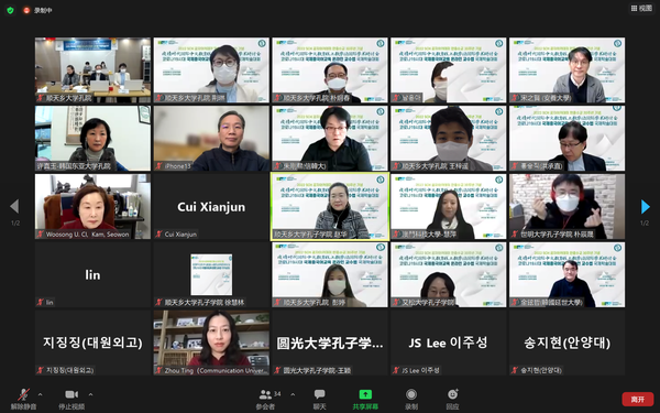 来自韩国、中国、匈牙利、乌克兰等地的业内专家学者及孔子学院汉语教师共50余人通过网络就新冠疫情期间国际中文在线教育的相关学术问题展开了深入热烈的探讨。韩国顺天乡大学孔子学院韩方院长朴炯春教授、中方院长赵华教授主持会议。顺天乡大学人文学振兴院院长洪承直教授、韩国又松大学孔子学院韩方院长甘瑞瑗教授做总评发言。