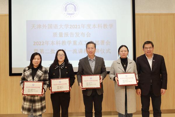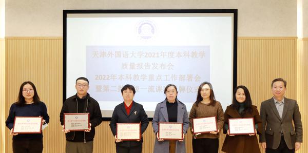 会上,校领导分别对第二批天津市一流本科建设课程负责人进行授牌颁奖。教务处处长刘建喜发布2021年度本科教学质量报告。本次会议正式吹响了迎评工作的“冲锋号”,全校上下要充分认识审核评估工作的重要性,统一思想,凝心聚力,全力以赴做好评建工作,以优异的成绩推进学校高质量发展再上新台阶。