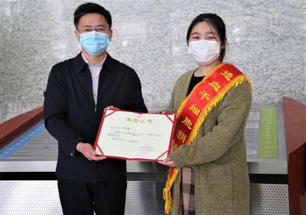 4月11日,我校英语学院2020届校友赵彩彤在天津市第一中心医院成功捐献造血干细胞,成为天津市第305例、学校第20例造血干细胞捐献者,这是第7位成功捐献的校友,也是今年我校第3例造血干细胞捐献者。