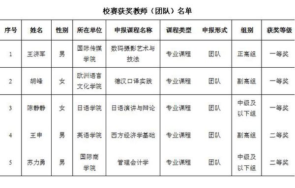 本届大赛于去年12月正式启动,历时5个月,经过校内初赛、天津市赛的层层角逐,最终我校两门课程脱颖而出、喜获佳绩。国际传媒学院王济军教授团队的课程《数码摄影艺术与技法》荣获天津市地方高校正高组二等奖,欧洲语言文化学院胡峰副教授团队的课程《德汉口译实践》荣获天津市地方高校副高组二等奖。