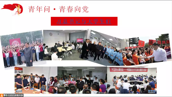 此次党日活动分为“青年问·青春向党”“青年说·携手奋斗”“青年志·强国有我”三个环节。党支部书记刘君带领大家一起观看微纪录片《十年—习近平与大学生在一起》,回顾习近平总书记对广大青年的殷切期望,并引导同学们深入思考“青年应该成为什么样的人,应该如何放飞青春梦想,如何担负起新时代的青春责任”,鼓励同学们牢记习总书记的嘱托,不负青春、不负韶华、不负党和人民的殷切期望,在干事创业中实现自我价值,为民族复兴贡献青春力量。