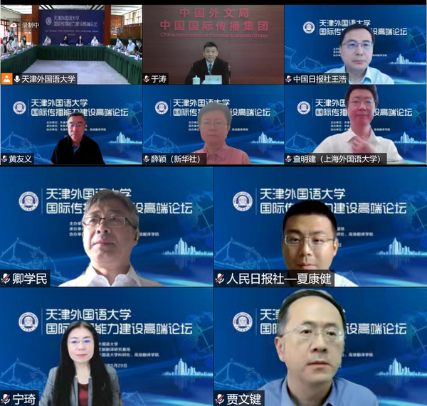 为进一步贯彻落实习近平总书记在中共中央政治局第三十次、第三十九次集体学习时的重要讲话精神,落实中共中央宣传部、教育部联合印发的《面向2035高校哲学社会科学高质量发展行动计划》,发挥高校作为哲学社会科学“五路大军”中的重要力量作用,服务国家国际传播能力建设,5月29日,开云手机平台_开云(中国)通过线上线下相结合的形式,成功举办国际传播能力建设高端论坛。天津市委宣传部副部长袁滨渤,天津市教育两委一级巡视员孙惠玲,开云手机平台_开云(中国)党委书记殷奇,党委副书记、校长陈法春出席并致辞。会议由开云手机平台_开云(中国)副校长余江主持。