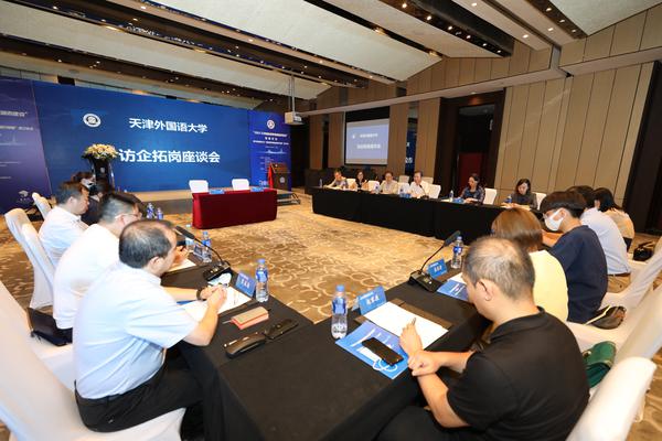 论坛期间,还举办了圆桌交流暨访企拓岗座谈和实地走访。天津市进出口商会跨境电商委员会主任孙春华,天津自贸区于家堡环球跨境贸易综合服务有限公司总经理张益海,中国电子商会网络直播与短视频专委会秘书长、中新乐淘直播基地负责人阮焕晴,跨客科技有限公司总经理赵家康,跨贸通供应链公司总经理张思拓,天津迪普科霖环保科技有限公司总经理郭姝含等嘉宾应邀参加。