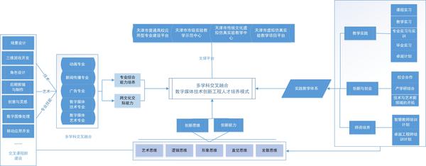 同时,本专业分别从课程体系结构、“互联网+”教学模式、创新创业、实践教学体系、教学评价体系等多方面对人才培养方案进行了规划与设计,形成跨学科、跨媒体、科学与人文艺术相融合的人才培养体系。