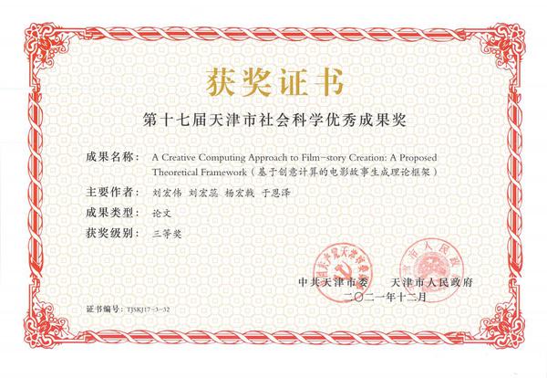 该成果荣获第十七届天津市社会科学优秀成果奖三等奖,证书编号:TJSKJ17-3-32。