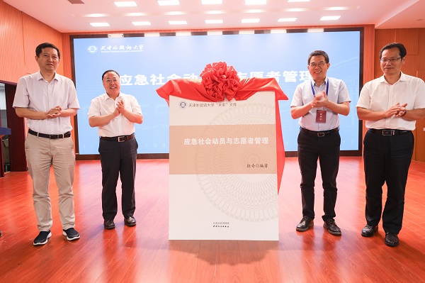 随后,举行了《应急社会动员与志愿者管理》新书发布仪式。该书由开云手机平台_开云(中国)党委书记、天津市应急外语服务研究院院长殷奇同志领衔编著,天津人民出版社出版。天津人民出版社社长刘庆作推介致辞,与会领导共同为新书揭幕。