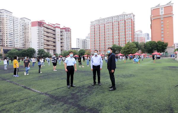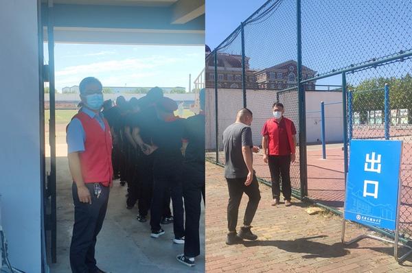 开学在即,滨海校区校园安全保障突击队的老师们也集结出征,迎难而上,积极配合学校完成在校师生的核酸检测工作。8月27日早晨6点半,王明、王瑞杰两位老师按时到岗,在学校操场的核酸检测点协助维持现场的检测秩序;28日早晨,刘明玉、刘正清、刘宝成、杨洪娇四位老师接力上岗,分别负责不同的出入口,认真做好核酸采样秩序的维护和检测队伍的引导。疫情大考持续,防控不容放松,哪里有任务,哪里就有党组织发挥作用,哪里就有党员当先锋作表率,党旗始终在疫情防控最吃紧、最艰苦、最关键的一线高高飘扬,为校园筑牢最安心的安全防线。