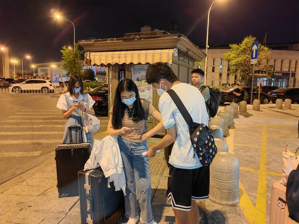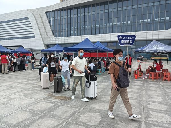 十一点,夜已深,天津南站前广场上白天喧闹熙攘的各所高校接站点位已经陆续撤离。最后一名因列车晚点而延迟到站的学生在他的耐心指引下顺利完成了报到手续。从早上8点直至晚上11点,应接名单上的所有学生都已平安返校,虽有些许疲惫,但回到办公室的他又开始为第二天一早的校内全员核酸做起了准备……