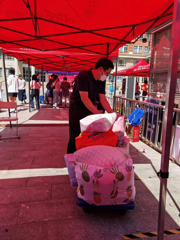 英语学院精心策划,充分准备,为每一位新生准备了防疫礼包,守护新生的健康安全;悉心安排,全力奉献,在每一栋宿舍楼下配备了专门的志愿者帮助新生们搬运行李,点对点服务到位;初入天外,创意留念,设计了创意“朋友圈”拍照打卡留影版,留下新生与天外英院的第一张合影。