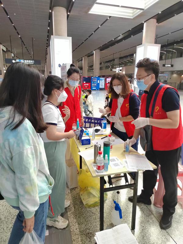 全“新”全意守护你。为了做好疫情防控常态化下的迎新工作,学校教师党员突击队持续开展工作,两天共派出队员近130人次服务于两校区新生报到,“三站一场”、门卫查验、核酸检测等点位上随处可见突击队员们服务保障的身影。负责接站的老师们24小时值班值守,核验信息、消毒防护、搬运行李,点对点精准护送新生们到达两校区,暖心服务消除了家长们的顾虑,让新生们感受到来自天外的温暖。