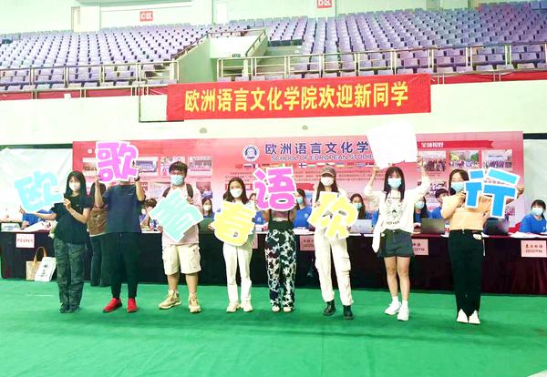欧洲语言文化学院迎来了2022级本硕博8个语种------德、法、西、俄、意、葡、匈牙利语、捷克语300余名小萌新,师哥师姐们用“‘欧’歌青春‘语’你同行”的嘹亮口号声热情欢迎,并送上暖心的防疫“伴手礼”。迎新现场的迷你多语合照墙和录取通知书拍照卡,为新生定格住最难忘的瞬间。