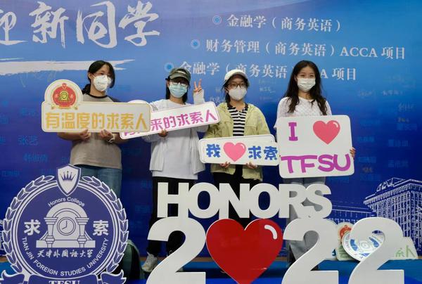 求索荣誉学院满怀“新”意为80名2022级新生私人订制入学文件包和健康防疫包,报到现场的迎新墙上,汇集了80名新生的姓名,每一位新生郑重写下自己的名字,满怀憧憬和希望地签下与天外的四年之约,奔赴一场与求索的青春盛宴。