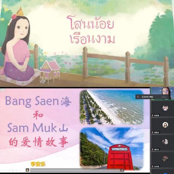 结业仪式上,学员紧扣“故事中国”主题展示了自己精心准备的结课作品。初级班学员Punbebe用一口流利的中文讲述了泰国民间传说中王子与公主的故事,展现了泰国人民对真善美的向往和追寻。高级班学员李安乐准备了精彩的视频动画,为大家讲述了家乡春武里府的著名景点Bang Saen海和Sam Muk山背后浪漫的爱情故事。