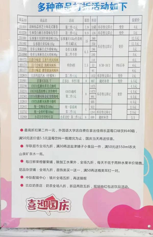 假期前夕,学校为同学们发放了“欢度国庆节 喜迎二十大”消费券。10月1日,校领导率队走访校园商超,每到一处,详细询问商品价格和消费券使用情况,仔细查看商品品质,听取同学们的反馈意见,并要求商超负责人和相关部门,充分保障假期物资供应,开展系列打折促销活动,确保价格优惠、品质优良,保障同学们的生活物资需求。
